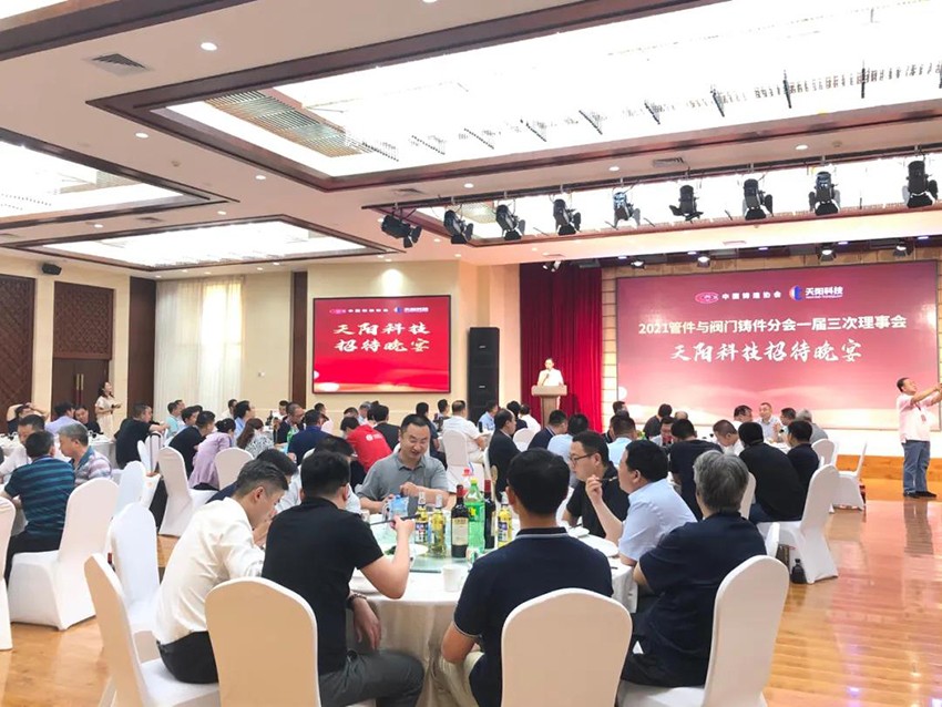 2021年6月10日,为庆祝“2021年中国铸造协会管件与阀门铸件分会年中会议第一届三次理事会”的隆重召开,天阳科技晚上为参会代表准备一场丰盛的招待晚宴。